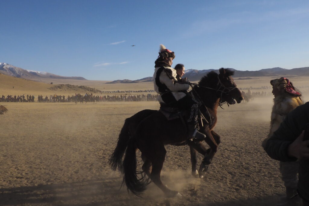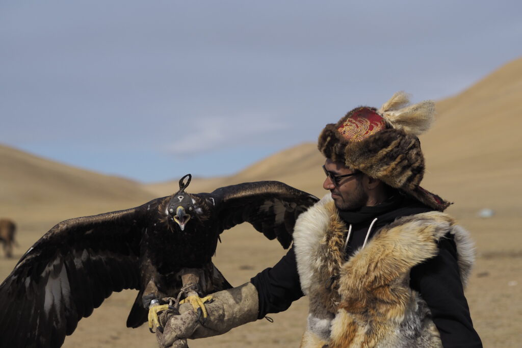 There are two main events: calling the eagle from a distance and the eagle “diving” to a lure (a fox skin dragged by a horse).